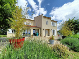Exclusivité Proche du Château de Thuret / Bien rare / Mas provençal de 1982 snas aucun voisin / 180m² Habitables / Terrain de 6600m² arboré / Vue dégagée / Entrée / Séjour traversant avec cheminée / Cuisine équipée et aménagée / Chambre / Salle d’eau / wc / et à l’étage une pièce palière / trois grandes chambres / salle d’eau / wc / Au sous sol, deux garages / atelier / salle de jeu / salle d’eau / wc / chaufferie / Carport de 60m² sur mesure / Assainissement individuel conforme / Double vitrage PVC / Chauffage par pompe à chaleur air-eau plus clim et insert au bois / Taxe Foncière :1500€