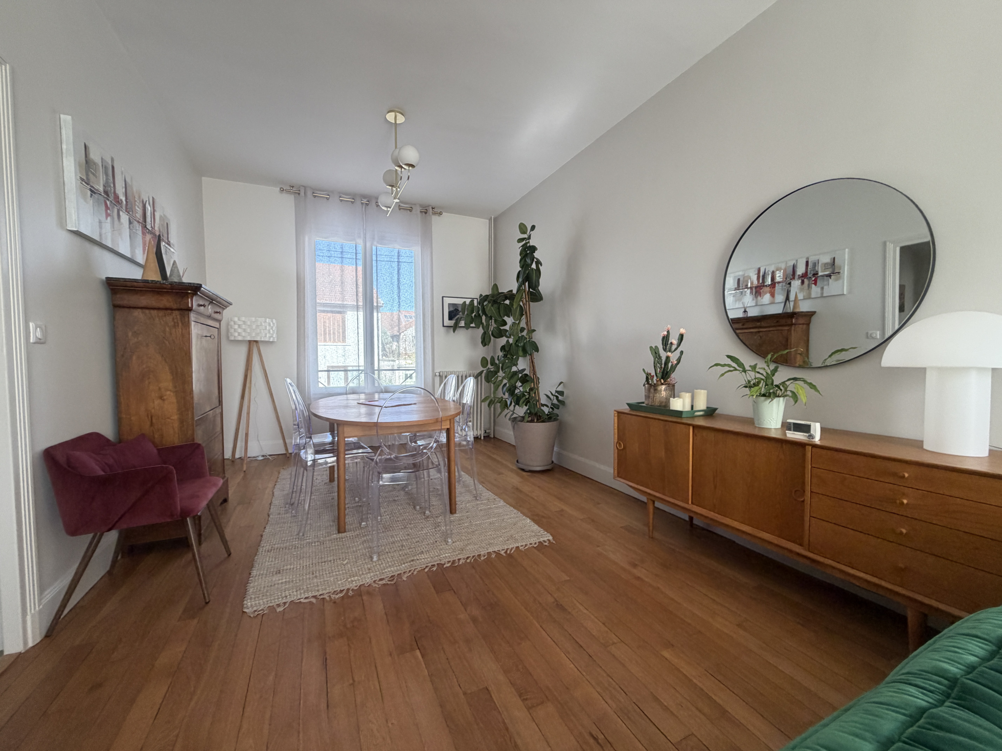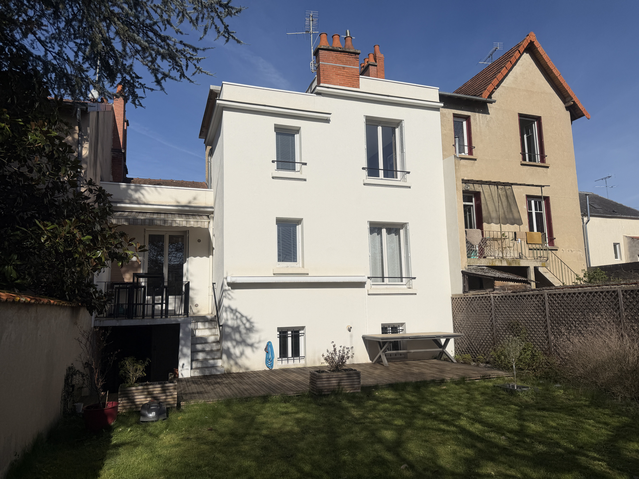 Exclusivité à Cusset / Centre ville / Maison de ville T4, entièrement refaite de 110 m² avec garage, terrasse et jardin à l'arrière / En rez-de-chaussée : Entrée / Salon-Séjour traversant lumineux / cuisine équipée donnant directement accès à une terrasse et au jardin / Chambre / Salle d'eau / Wc / A l'étage : 2 Chambres avec placards / Salle d'eau avec Wc / En sous-sol : Buanderie / Chaufferie / Cave / Chauffage au gaz de ville / Tout à l’égout / Menuiseries double vitrage / IF 1526 €.